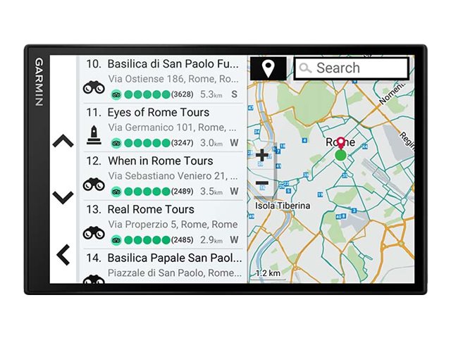 | Funktionen | Freisprechen über Bluetooth, Geschwindigkeitsmesser-Warnungen, Terrain 3D, Anzeige von Straßenkreuzungen, Warnung im Bereich von Schulen, Garmin Real Directions, Live Traffic-Updates, Smart-Benachrichtigungen, Point Of Interest (POI), Halterung für drahtlose Rückfahrkamera, 3D Buildings, Red Light Camera Alerts, Amazon Alexa | |||