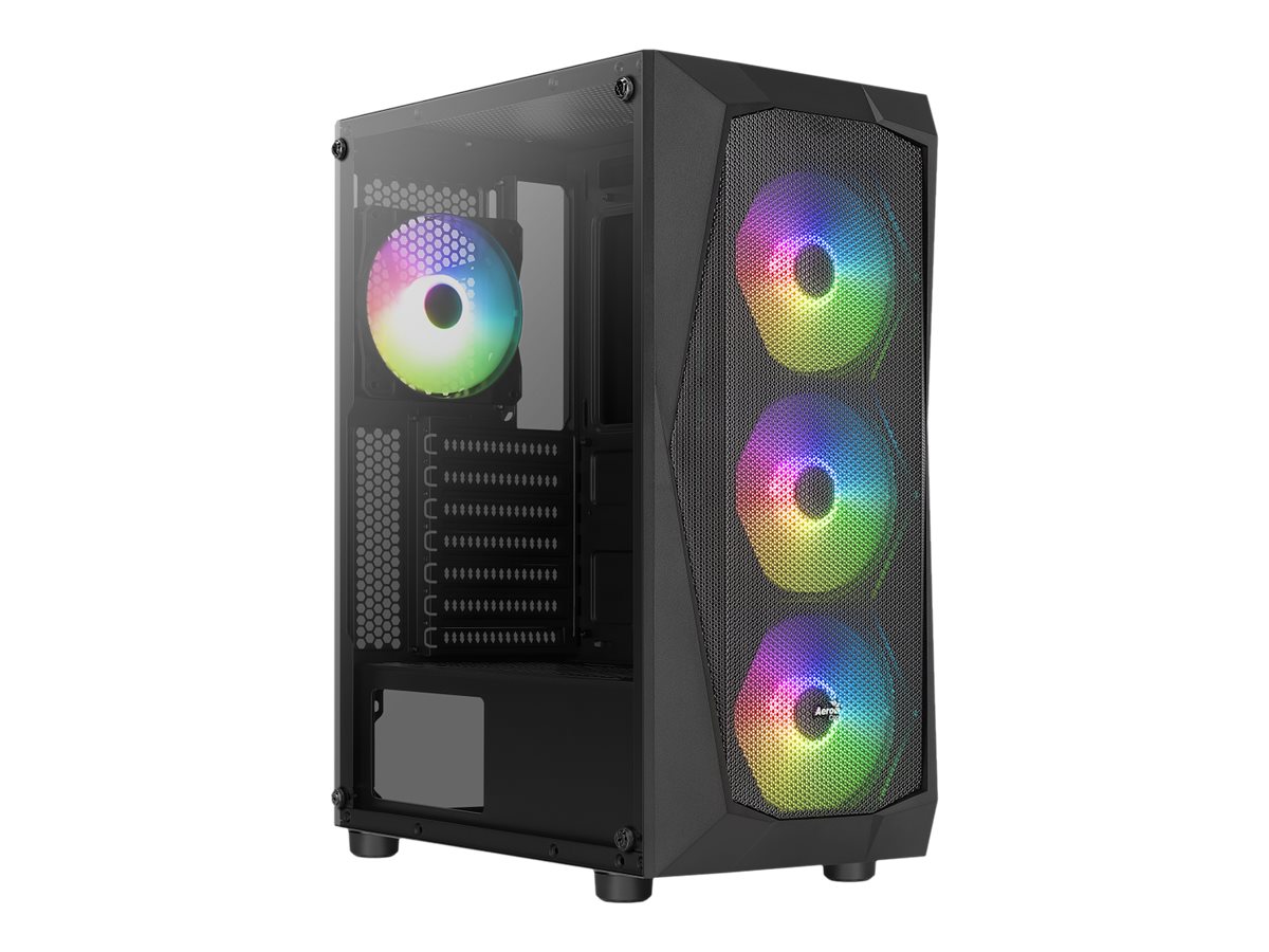 AeroCool Falcon ARGB - Mid tower - ATX - Seitenteil mit Fenster (gehärtetes Glas) - keine Spannungsversorgung (ATX) - Schwarz - USB/Audio